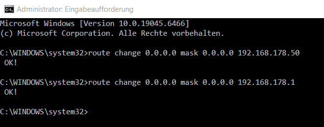 - Das Gateway erhalte ja ich automatisch auf einem Windows-System per DHCP - kann aber das Gateway dann temporär wechseln: