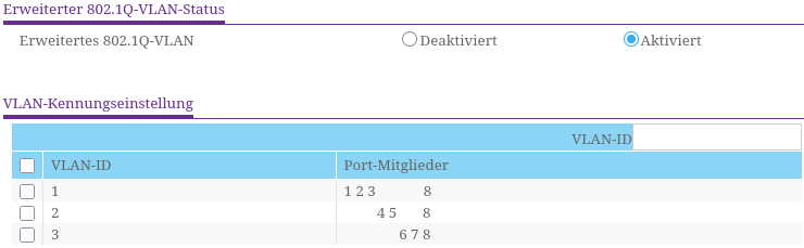 - Administriert werden die Switche über den Port 1, da ist immer VLAN 1 ungetagged, so sperre ich mich nie aus
